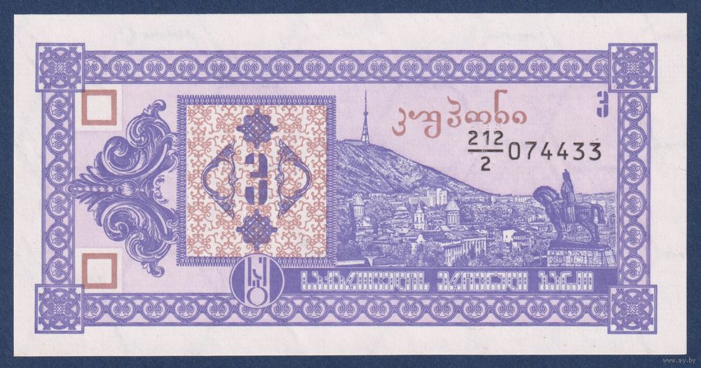 Грузия, 3 купона 1993 г., P-34 (212|2, гора Мтазминда, 2-ой выпуск), UNC