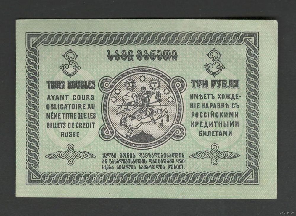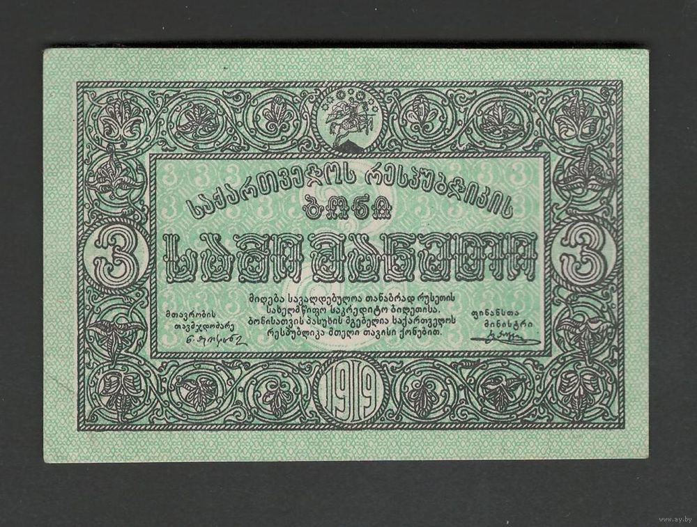 Грузия 3 рубля 1919 года. Тип Р-8. Состояние аUNC