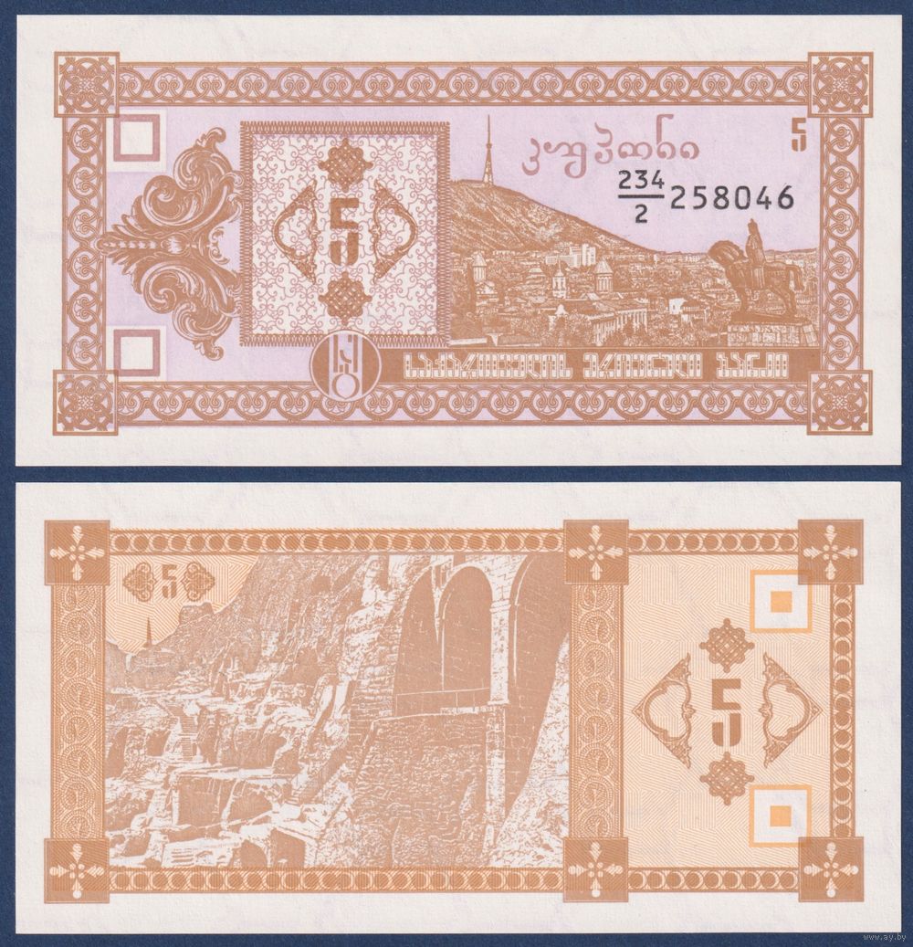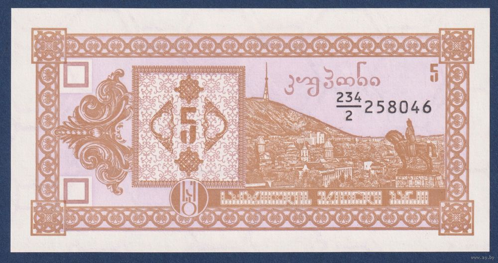 Грузия, 5 купонов 1993 г., P-35 (234|2, гора Мтазминда, 2-ой выпуск), UNC