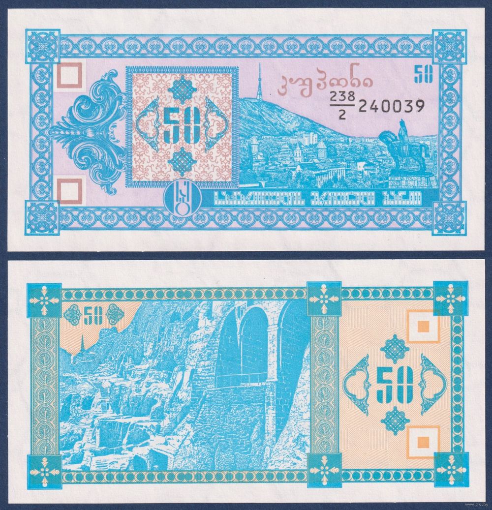 Грузия, 50 купонов 1993 г., P-37 (238|2, гора Мтазминда, 2-ой выпуск), UNC