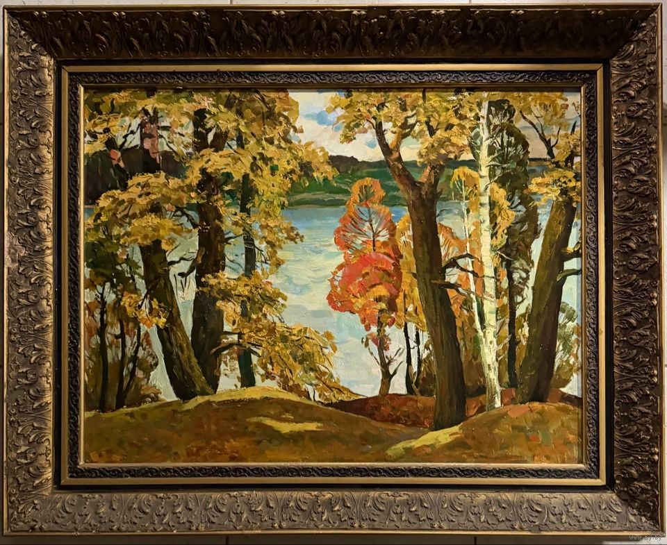 Гугель А.С. Каталожная работа ""Осенние кружева", картон, масло. Размер с родной рамой 77,5х63 см.