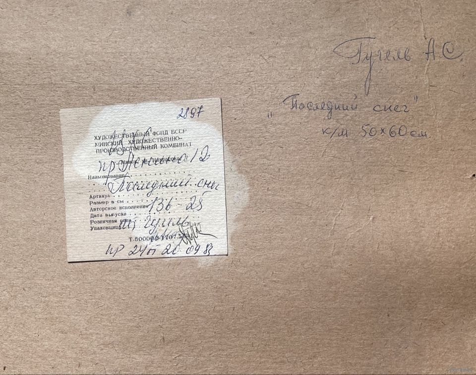 Гугель А.С "Последний снег", картон, масло. Размер с учётом родной рамы 60х70 см.