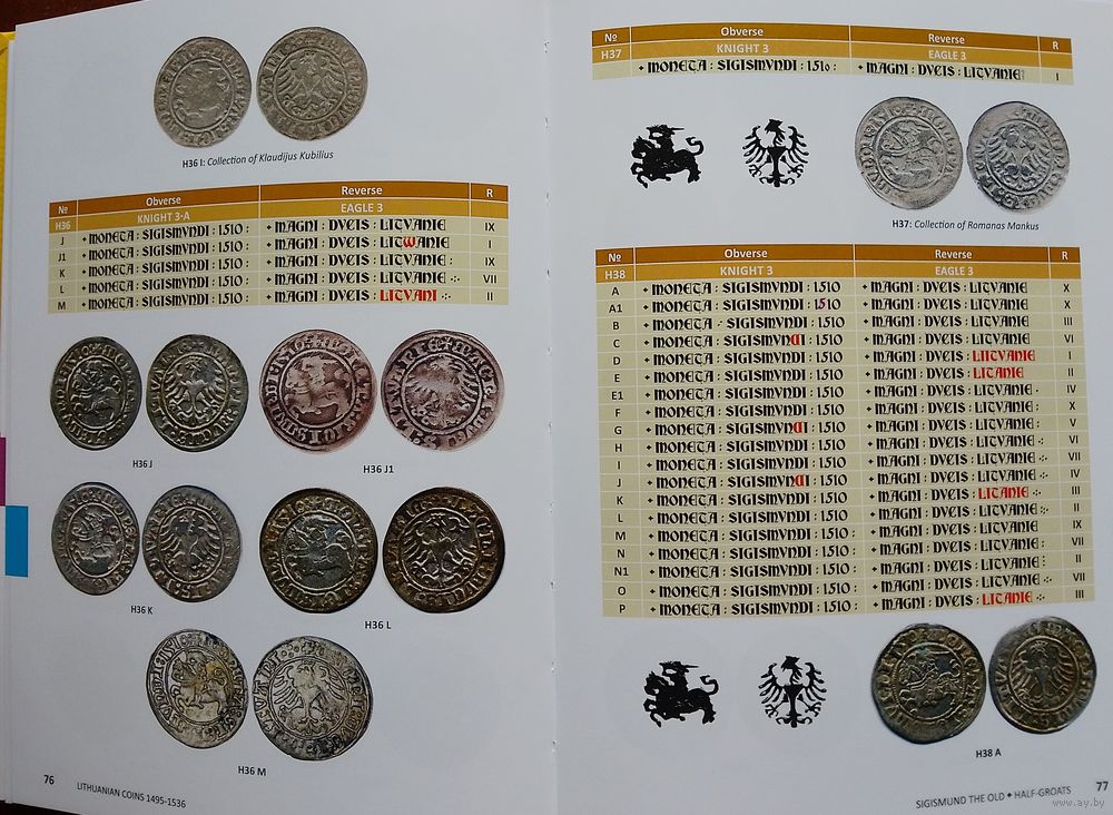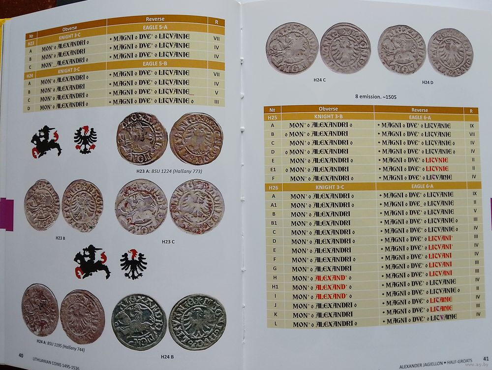 Huletski Dzmitry, Bagdonas Giedrius. Lithuanian coins 1495-1536. Vilnius 2021, 348 c. На англ. языке. Первое издание. Самое подробное описание литовских монет: Александр - 15 вариантов денариев и 141 полугрошей; Жигимонт I Старый - 1175 вариантов полугрошей 1509-1529 гг. и 219 - грошей 1535-1536 гг.