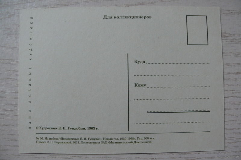 Гундобин Е., С Новым годом! (1963) из набора "Новый год. 1950-1965"; издание 2017 (лыжники, снегири).