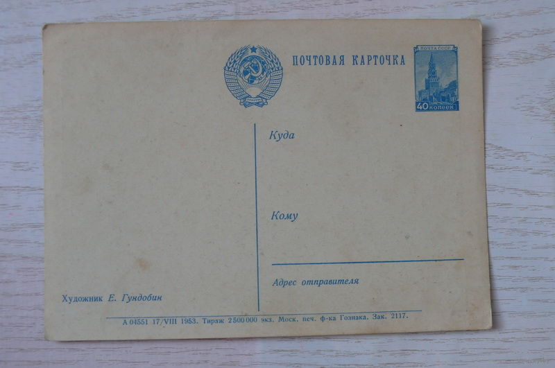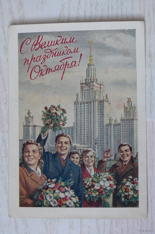 Гундобин Е., С Великим праздником Октября! 1953, чистая (синий герб).