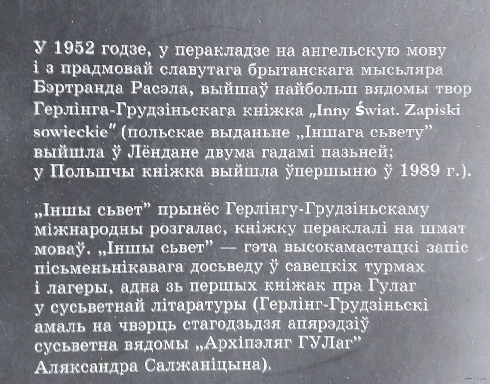 Густаў Герлінг-Грудзіньскі. Іншы свет. Менск. Мінск: Vivafutura, 2006 г. 410 с. Мяккая вокладка.