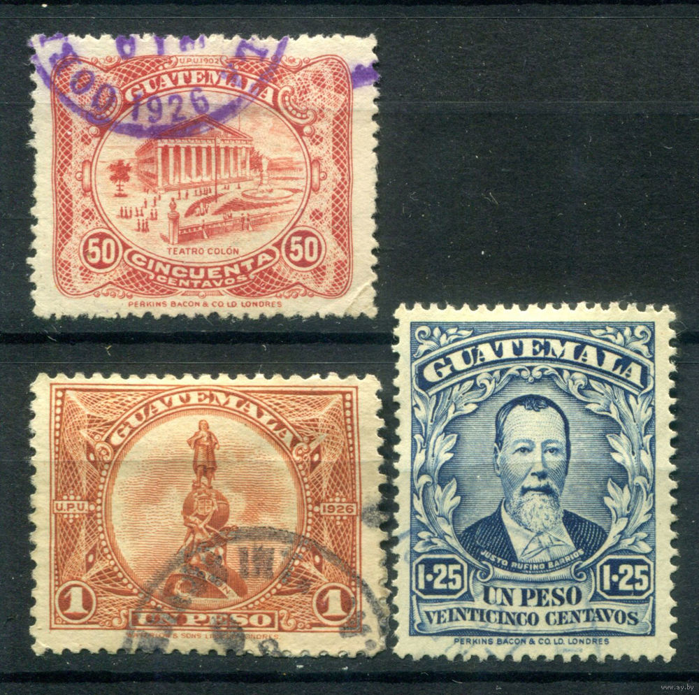 Гватемала - 1924г. - национальные символы, известные люди - 3 марки - гашёные. #4-W1-103-A-1