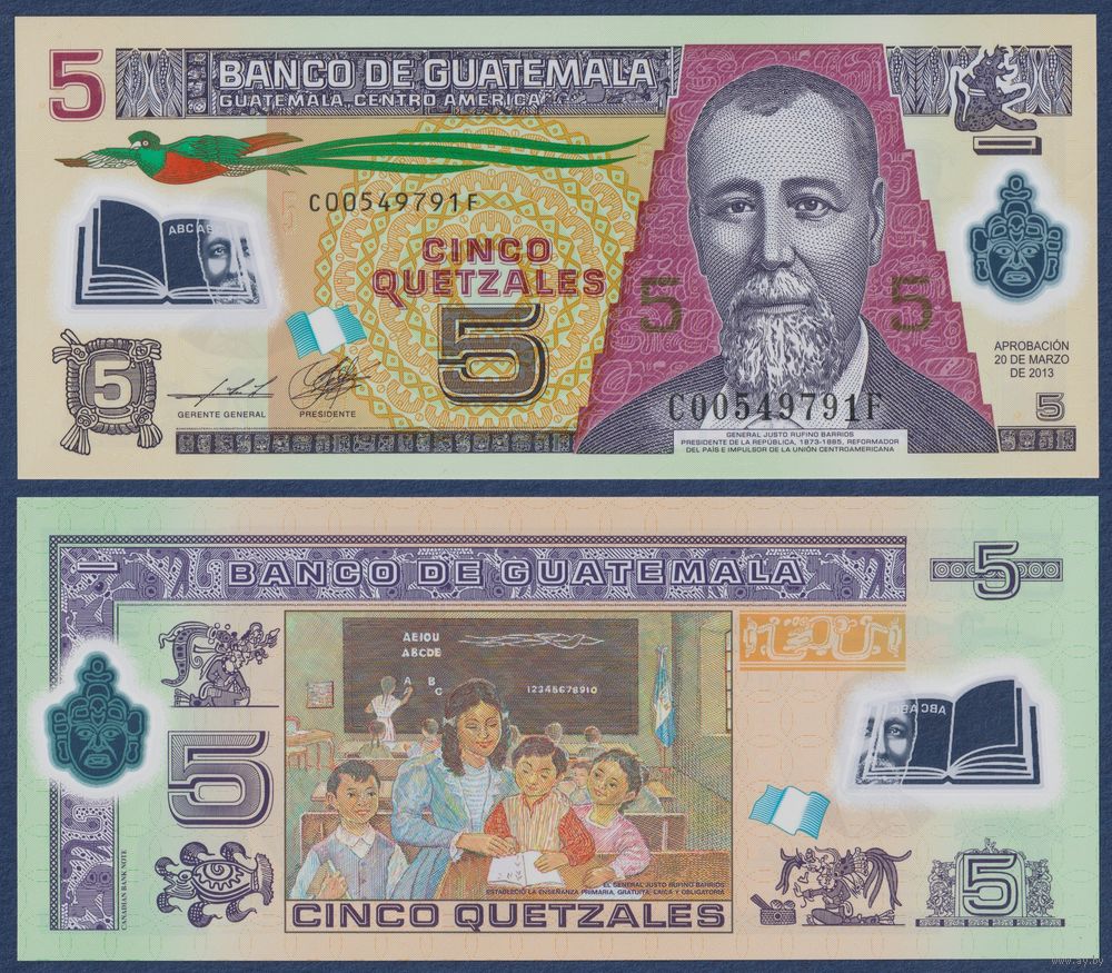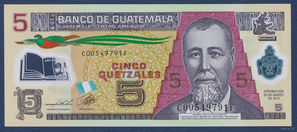 Гватемала, 5 кетсалей 2013 г, P-122d (C, президент Хусто Руфино Барриос Ауйон), UNC
