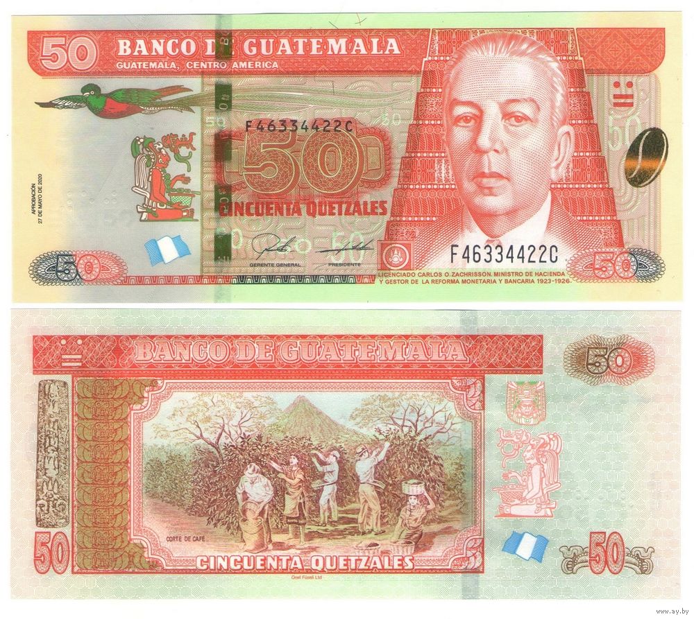 Гватемала 50 кетсалей 2020 год UNC