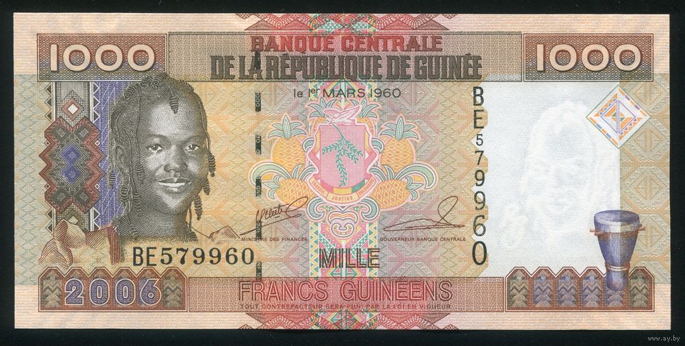 Гвинея 1000 франков 2006 г. P40. Серия BE. UNC