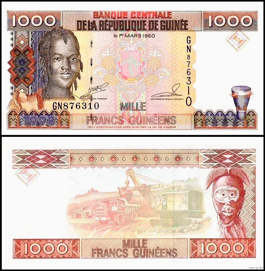 Гвинея 1000 франков образца 1998 года UNC p37 серия КВ
