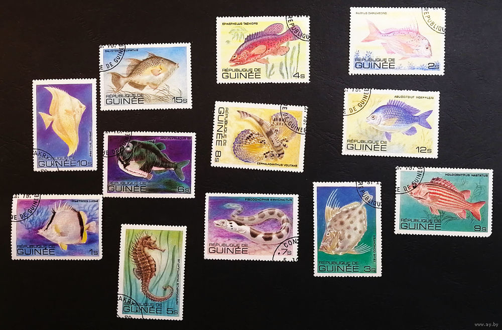 Гвинея 1980 г. Рыбы. Морская Фауна, полная серия из 12 марок #0228-Ф1P44