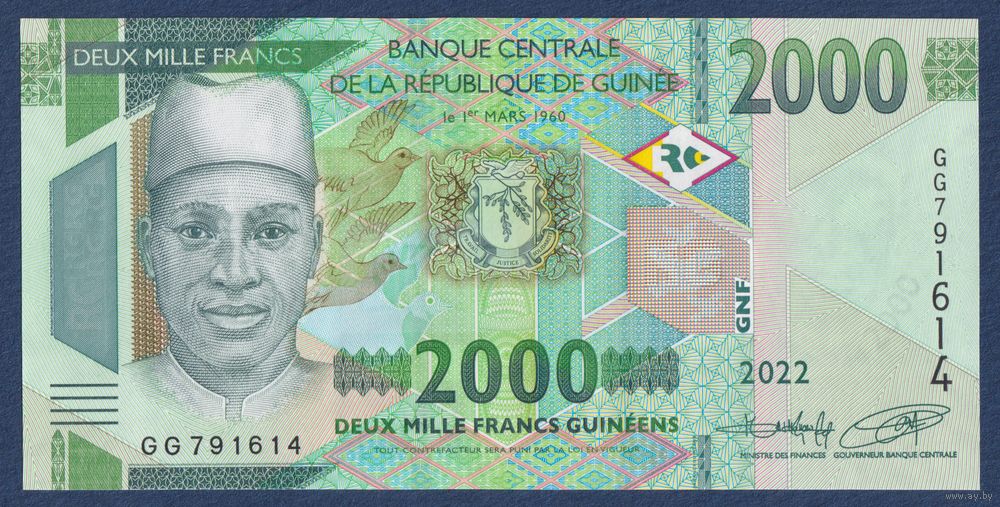 Гвинея, 2000 франков 2022 г, P-W48A (GG, мужчина, горы), UNC