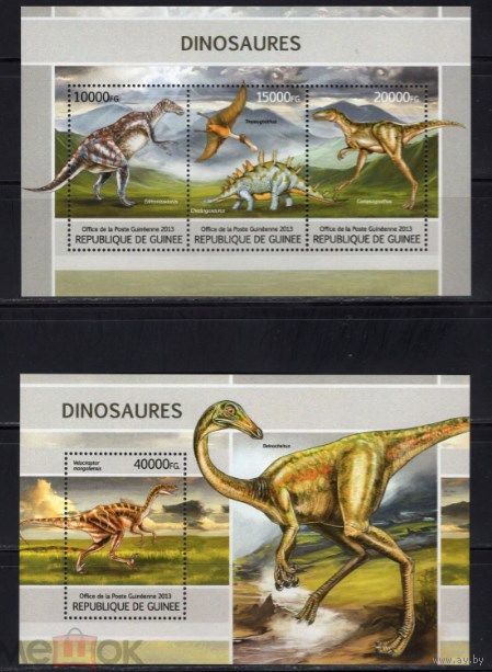 ГВИНЕЯ 2013 СЕРИЯ Блоков динозавры рептилии фауна MNH