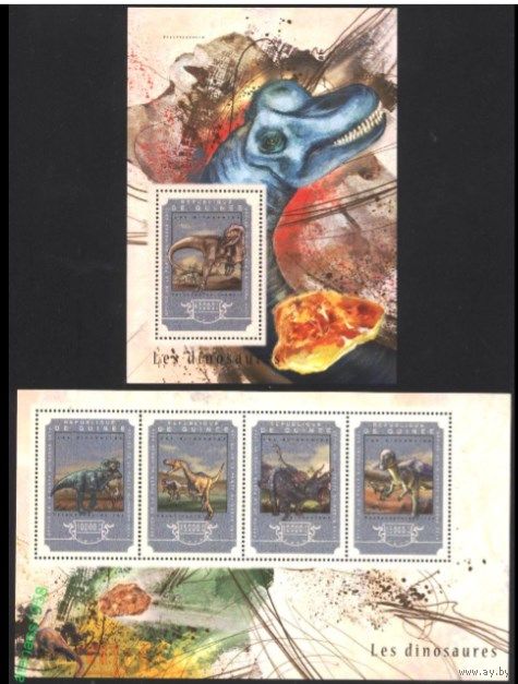 ГВИНЕЯ 2014 СЕРИЯ Блоков динозавры рептилии фауна MNH