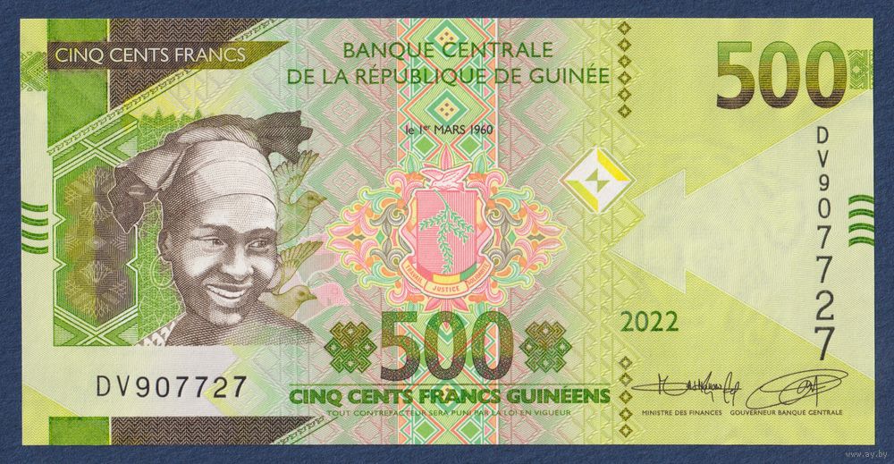 Гвинея, 500 франков 2022 г, P-W52 (DV, женщина, горнодобывающий конвейер), UNC
