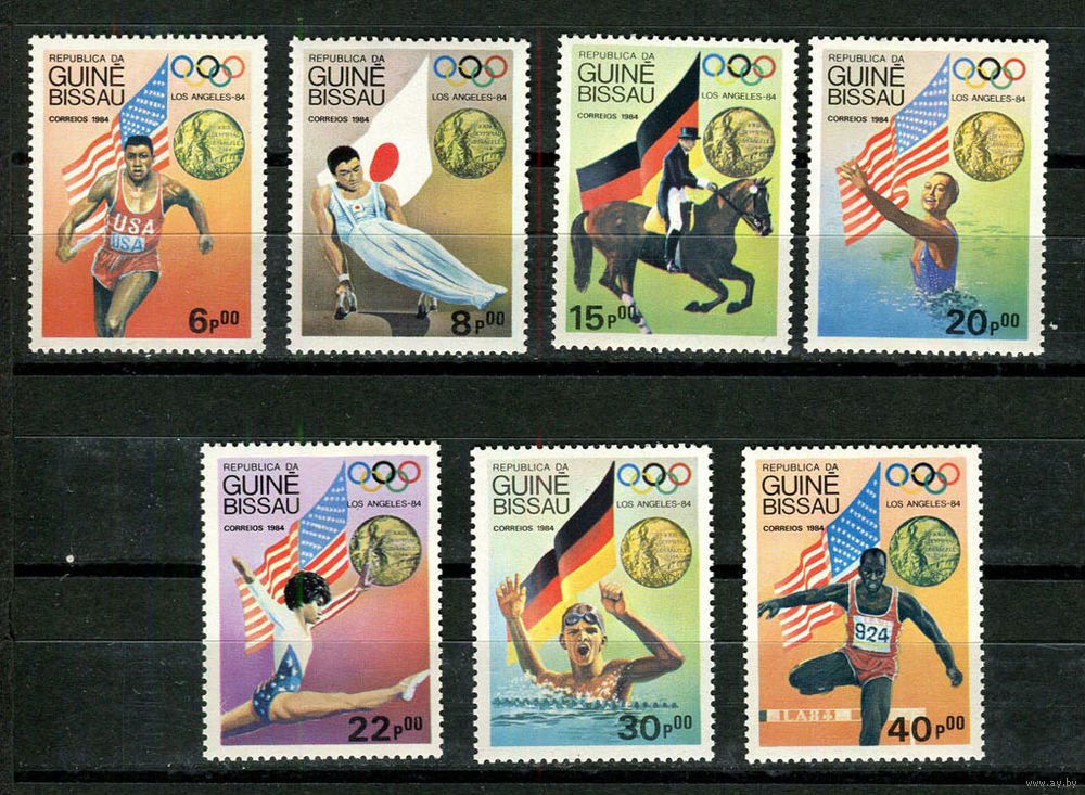 Гвинея-Бисау - 1984 - Победители Летних Олимпийских игр - (пятна на клее у ном. 6 и 22) - [Mi. 818-824] - полная серия - 7 марок. MNH. (Лот 77HU)-TG3P27