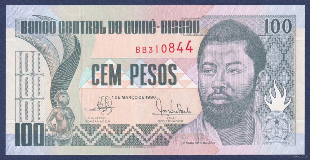 Гвинея-Биссау, 100 песо 1990 г, P-11 (национальный герой Домингуш Рамуш), UNC