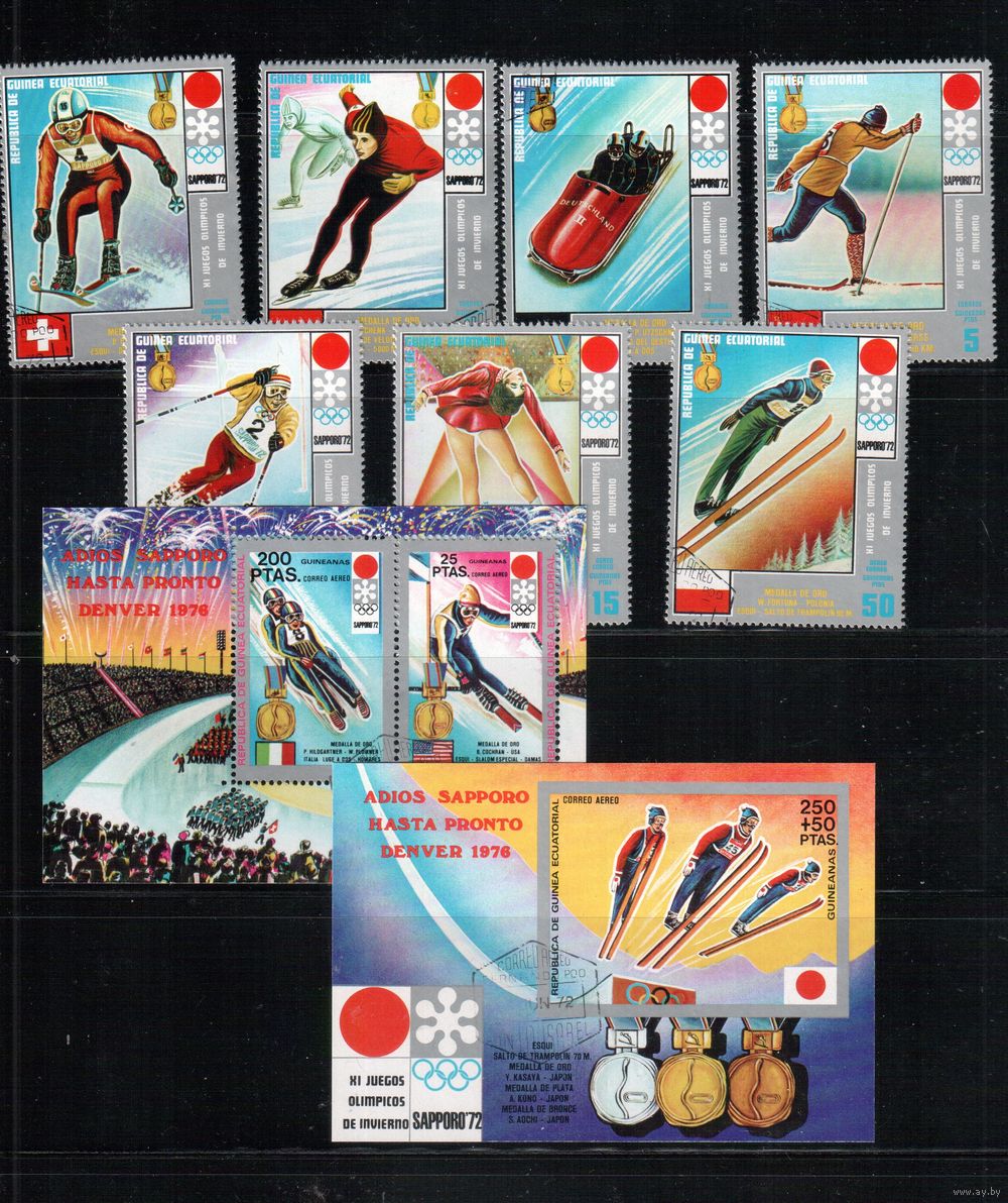 Гвинея Экваториальная-1972(Мих.66-72, БЛ.11-12) , гаш. , Спорт, Зимняя ОИ-1972,(полная серия)