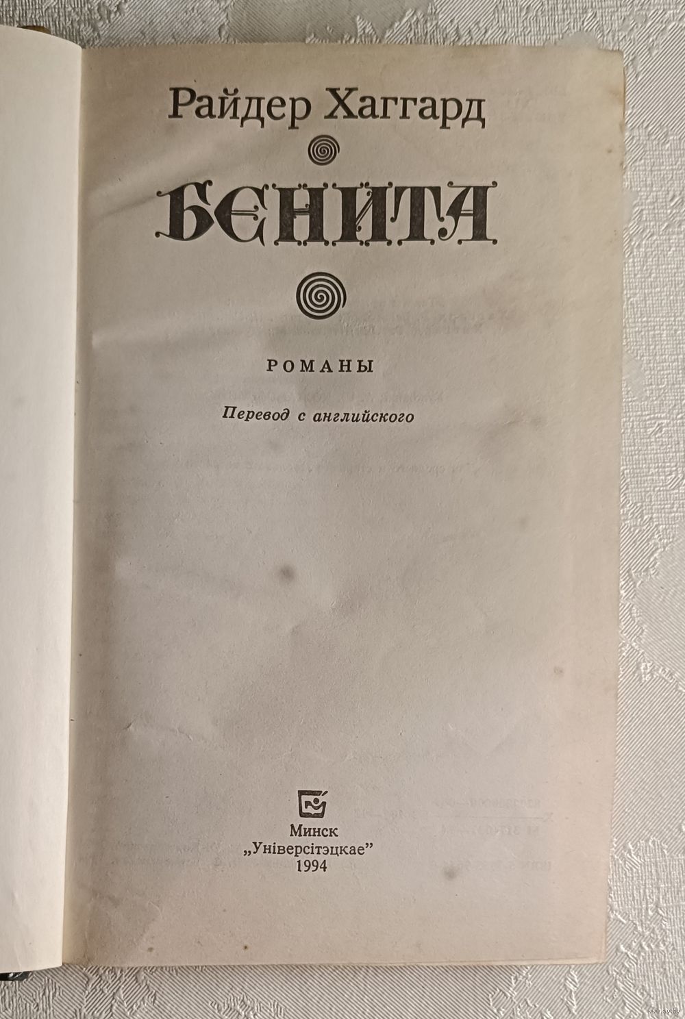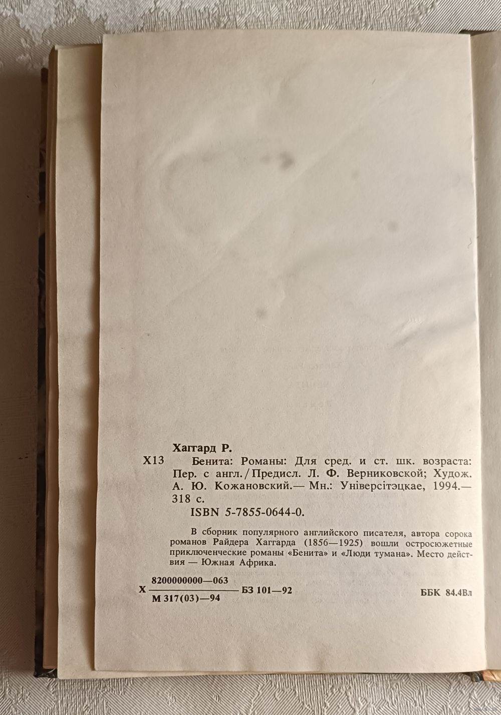 Хаггард Райдер. Бенита. Люди тумана: Романы: Для сред. и ст. шк. возраста: Мн.: Універсітэцкае, 1994.-318 с., твердый переплет, обычный формат.