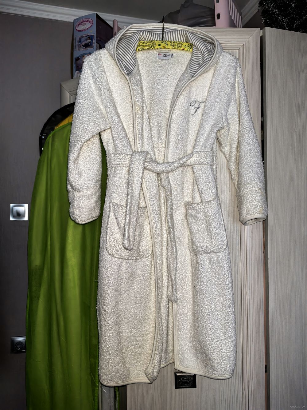 Хлопковый банный халат Futurino для девочки, в капюшоном и карманами.