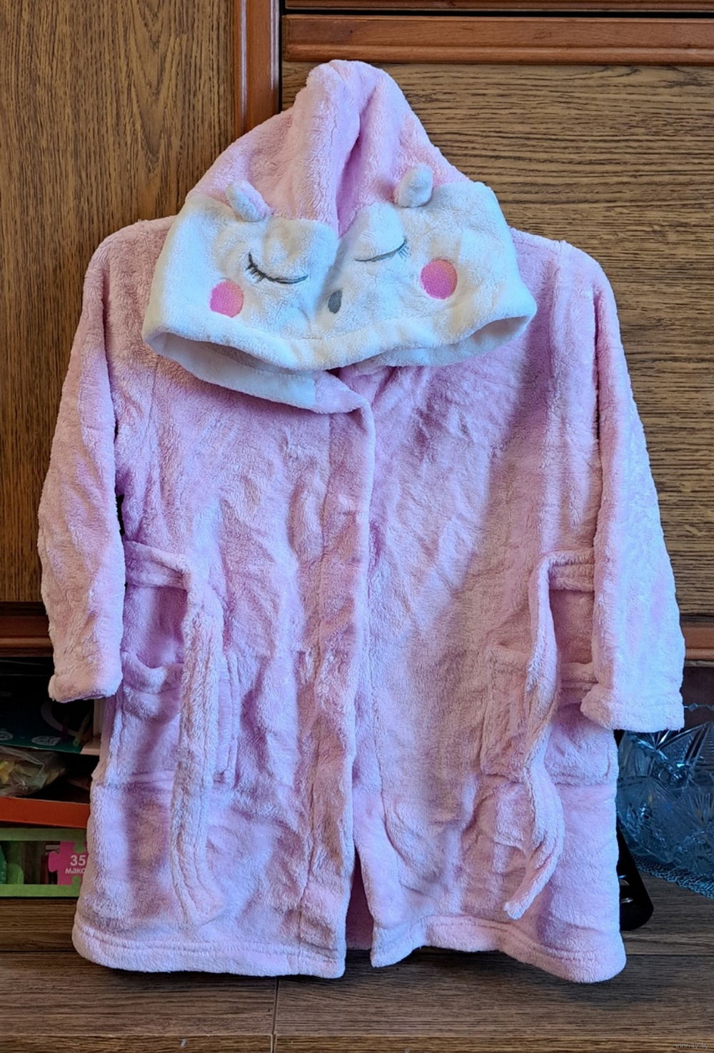 Халат розовый махровый на 3-5лет (р.98-110), б.ув хорошем состоянии.