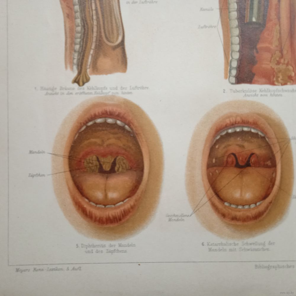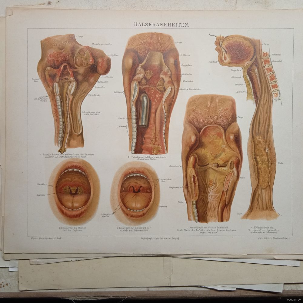 HALSKRANKHEITEN. Литография Германия. Гравюра середина 19века 30x24см. РАСПРОДАЖА КОЛЛЕКЦИИ.