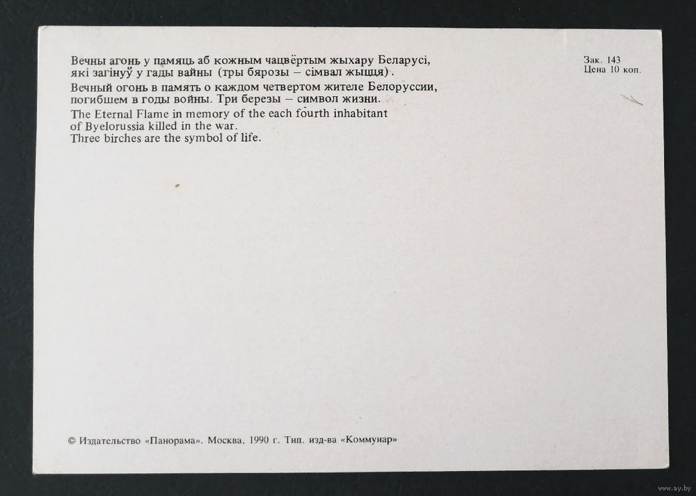 Хатынь. Мемориал память жертвам фашизма. Белоруссия. ВОВ. Виды городов. Пейзажи. Чистая 1990 год #0226-V2P113