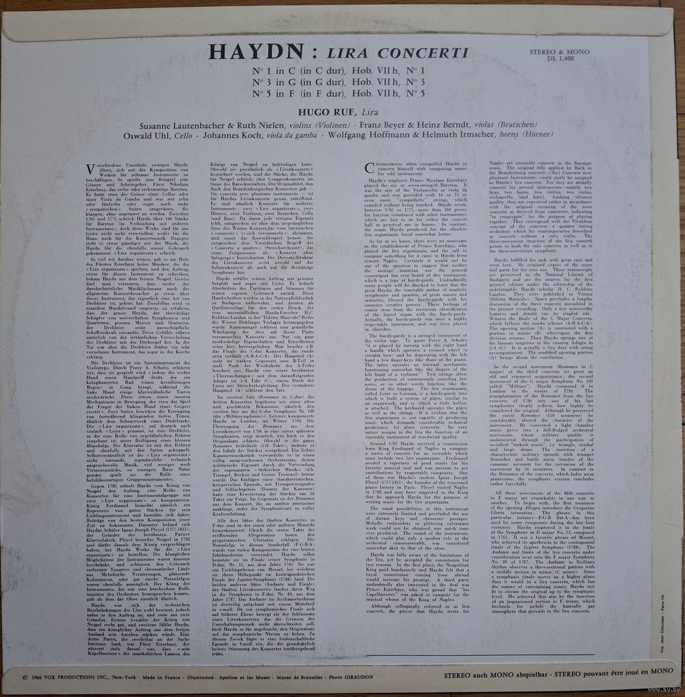 Haydn, Hugo Ruf – Lira Concerti Nr 1, In C / Nr 3, In G / Nr 5, In F.