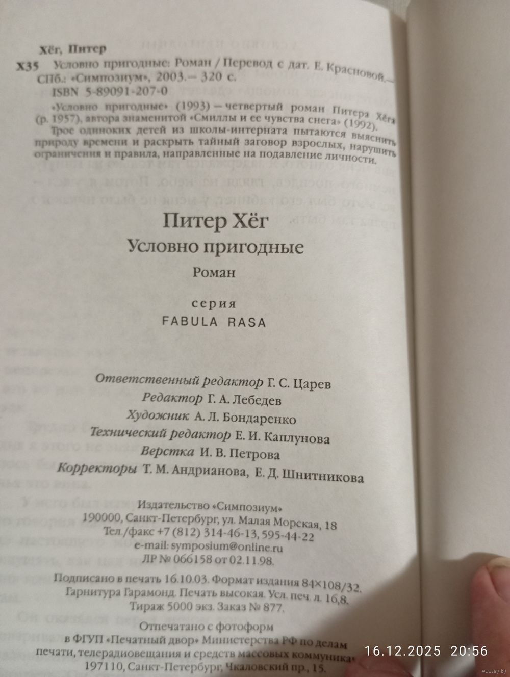 Питер Хег. Условно пригодные. 1 е изд. СПБ. Symposium 2003. В прекрасном состоянии, тв переплет, суперобложка. Редкая. 318 с. Тираж 5000. Возможность отправки Белпочтой, полная предоплата