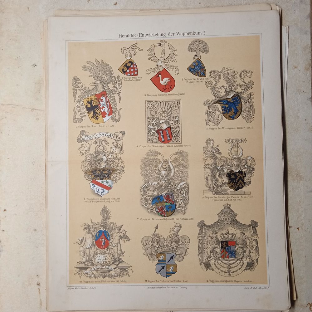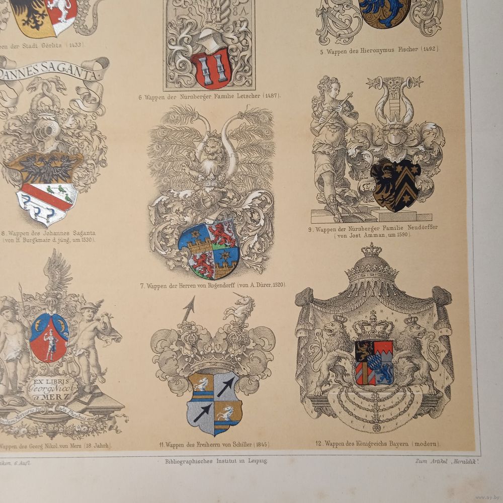 Heraldik .Литография Германия. Гравюра конец 19века 30x24см. РАСПРОДАЖА КОЛЛЕКЦИИ.