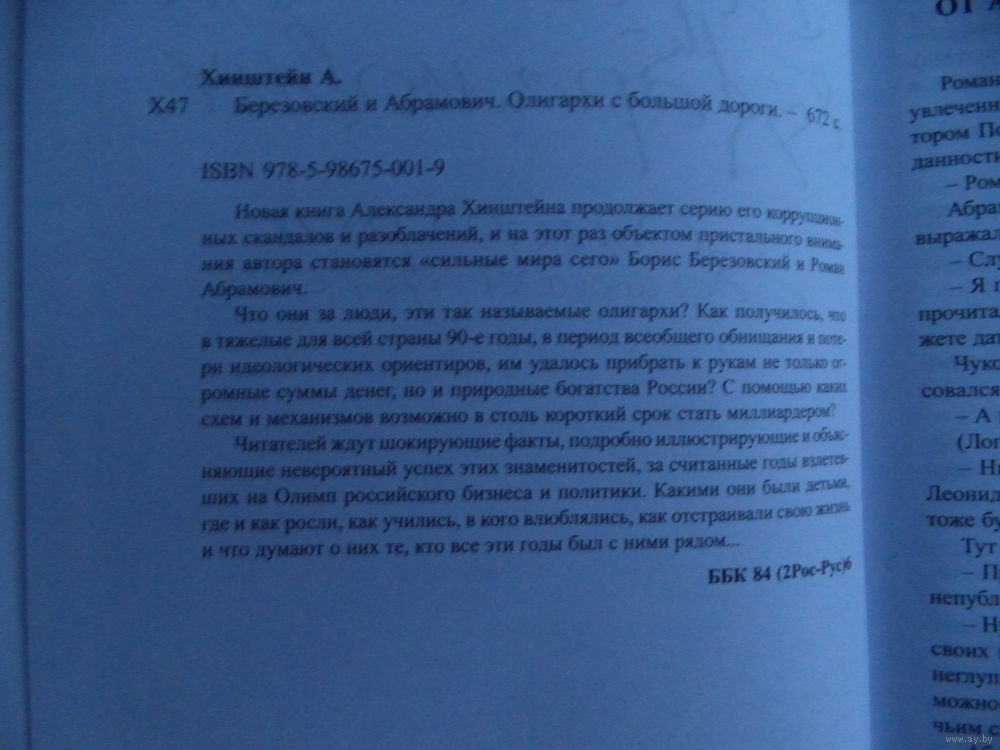 Книга Александра Хинштейна продолжает серию его коррупционных скандалов и разоблачений, и на этот раз объектом пристального внимания автора становятся «сильные мира сего» Борис Березовский и Роман Абрамович. Читателей ждут шокирующие факты, подробно иллюстрирующие и объясняющие невероятный успех этих олигархов, за считанные годы взлетевших на Олимп российского бизнеса и политики. Автор обещает сенсацию, поскольку впервые читателю предоставится право самому услышать «закулисные» разговоры вершителей наших судеб (на приложенном к книге аудиодиске) и понять, каковы механизмы создания несметных богатств за наш счет.