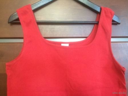 Хлопковая майка красного цвета на 50-52 размер. Хорошее состояние. ПОгруди 47-55 см, длина 55 см.