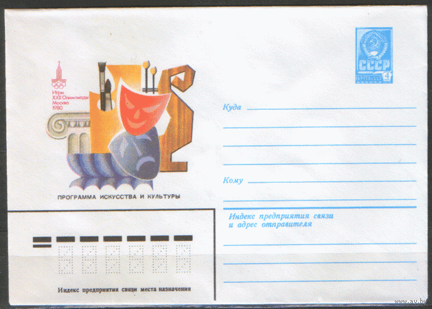 ХМ конверт. 1980. ОИ-80. Программа искусства и культуры.