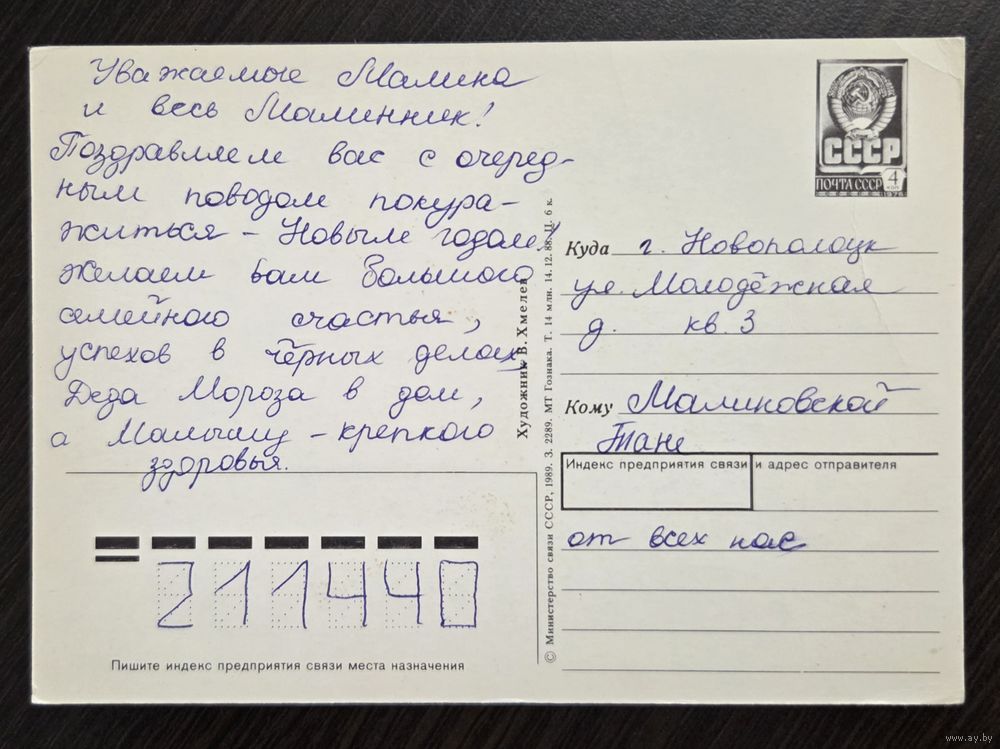 Хмелев С Новым годом 1989 подписанная открытка СССР