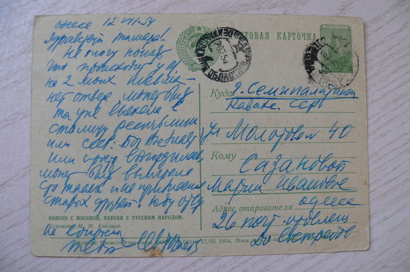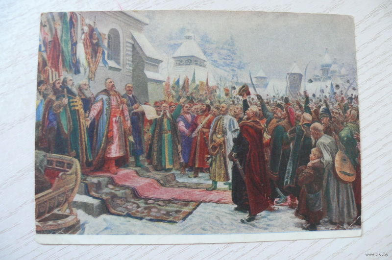 Хмелько М., Навеки с Москвой, навеки с русским народом; 1954, подписана, ДМПК, герб зеленый.