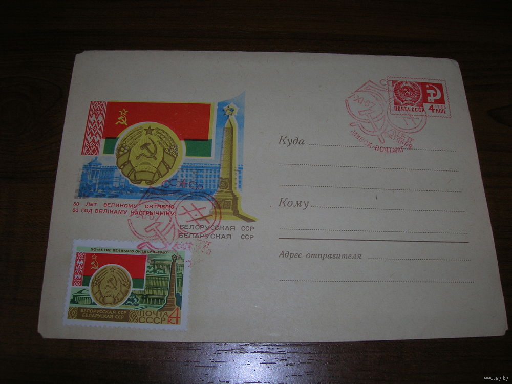 ХМК 1967 год 50 лет Великому Октябрю Герб Флаг БССР СГ Минск (2)