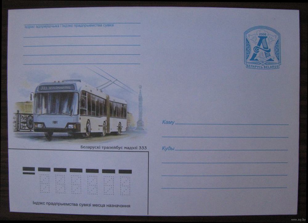 ХМК Беларусь 2006 г., Белорусский троллейбус модели 333, худ. Г. Долбик, з. 7157-06 .