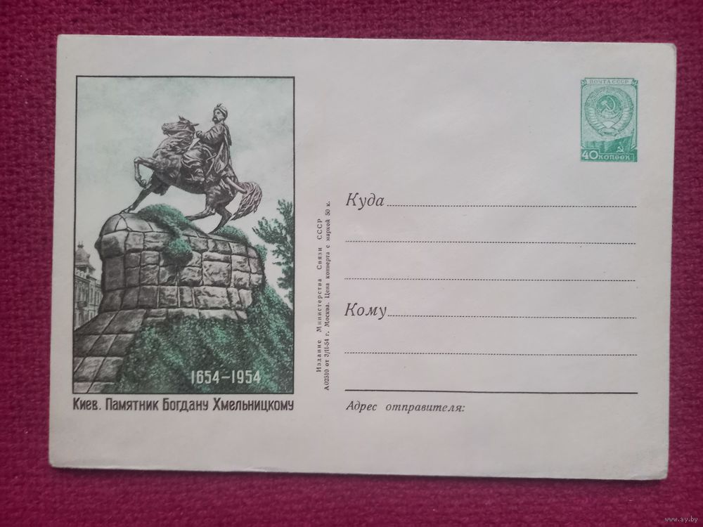 ХМК Конверт Киев. Памятник Богдану Хмельницкому. 1954 г. Чистый.