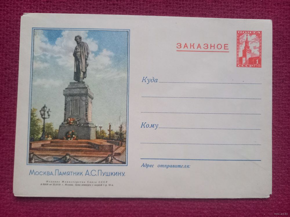 ХМК Конверт Москва. Памятник А.С. Пушкину. 1954 г. Чистый.