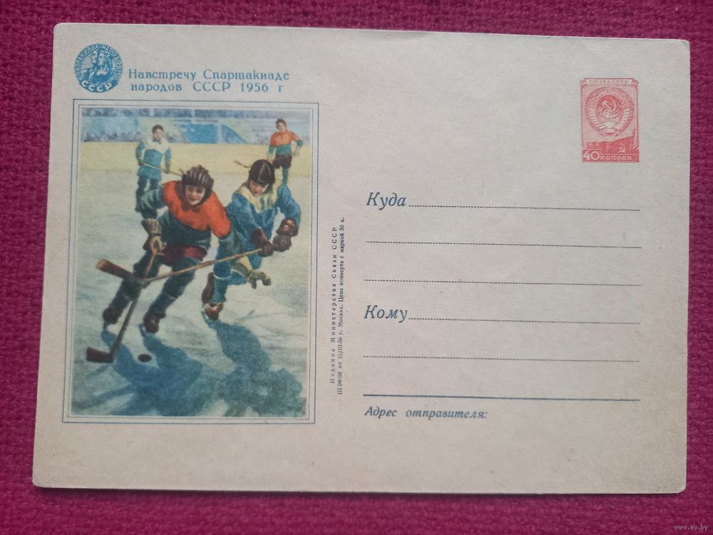 ХМК Конверт Навстречу Спартакиаде народов СССР Хоккей с шайбой 1956 г. Чистый.