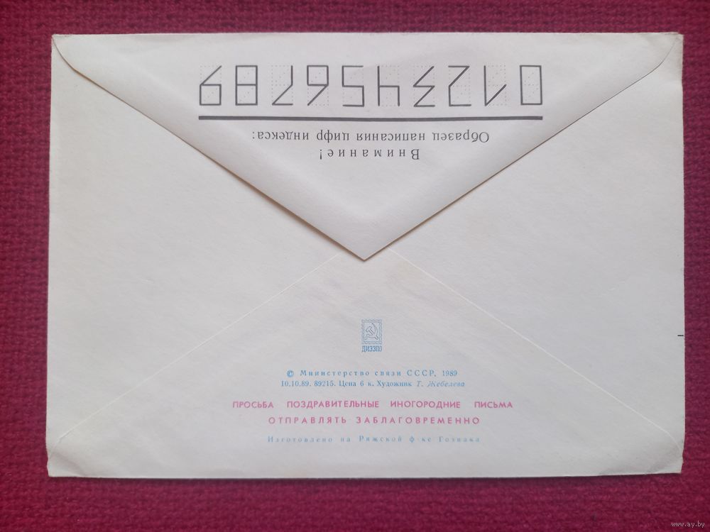 ХМК Конверт. С Новым Годом! Жебелева 1989 г. Чистый.