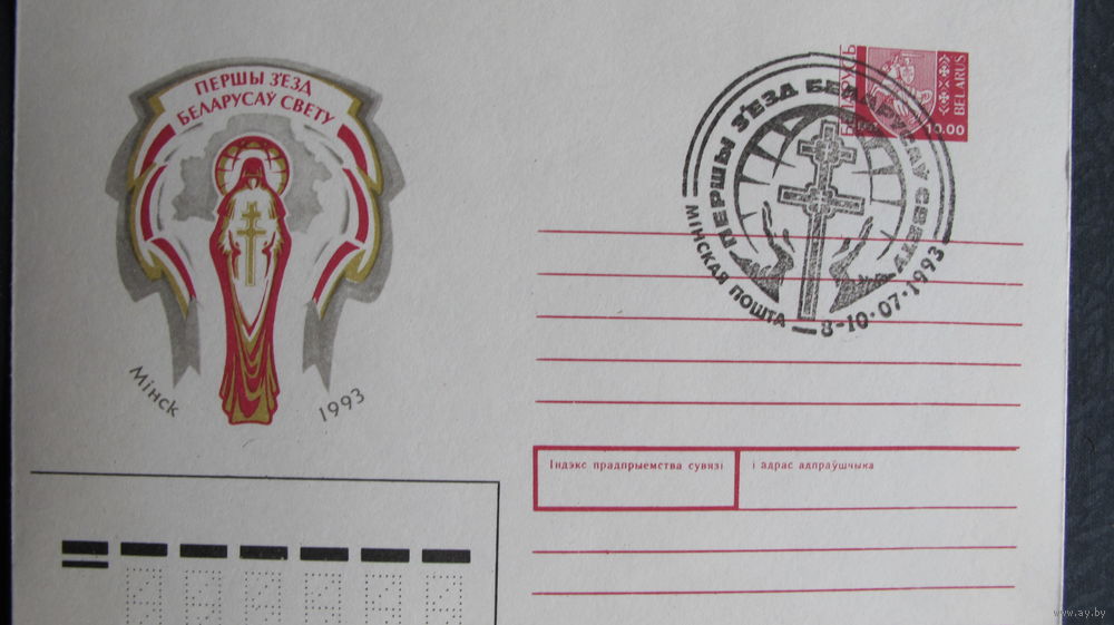 ХМК "Першы з'езд беларусаў свету" с гашением первого дня + соответствующая марка