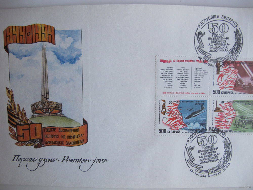 ХМК первого дня и спецгашение - 50 лет освобождения Беларуси (1994)