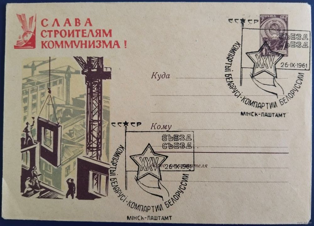 ХМК с спецгашением. XXV съезд Компартии Белоруссии.Минск.1961 г.