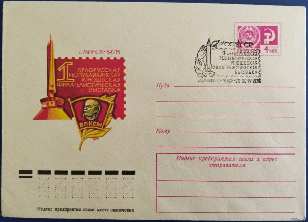 ХМК со спецгашением. 1-я Белорусская юношская филателистическая выставка. Минск. 1975 г.