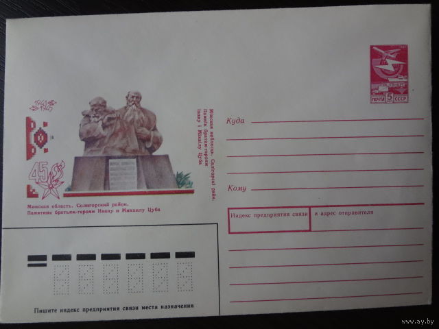 ХМК СССР, 1990 г. Солигорский район. Памятник братьям-героям Ивану и Михаилу Цуба.