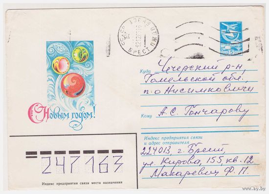 ХМК СССР, прошедший почту. 1983. С Новым годом! Худ. В. Бельтюков