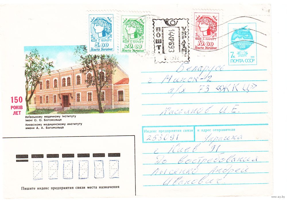ХМК СССР с провизорием, прошедший почту