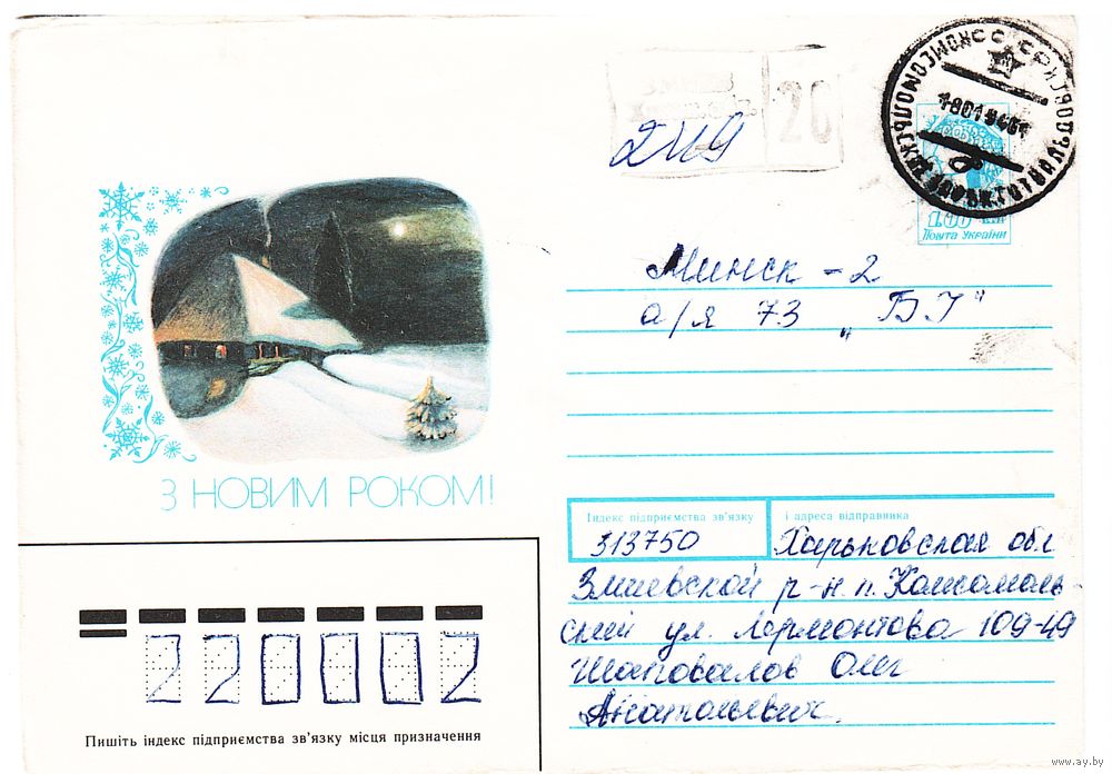 ХМК Украины, прошедший почту с редким провизорием